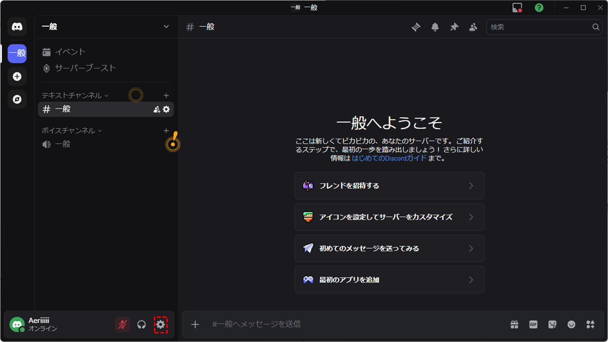 ステップ 1:Discordアプリを開き、画面左下の「ユーザー設定」(歯車アイコン)をクリックします。
