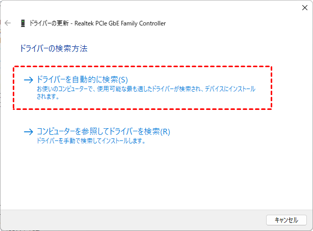 ステップ 4:「ドライバーを自動的に検索」を選択します。Windowsが最新バージョンを検索し、利用可能であればインストールします。