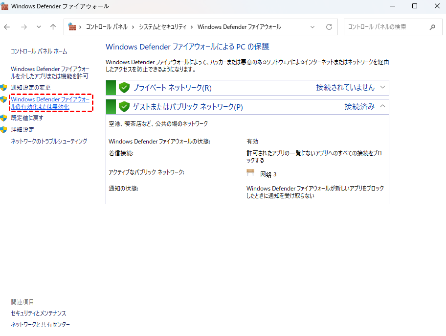Windowsファイアウォールが誤ってDiscordの音声接続をブロックし、「RTC接続中」の問題が発生することがあります。一時的にファイアウォールを無効にすることで、原因かどうかを確認できます。
