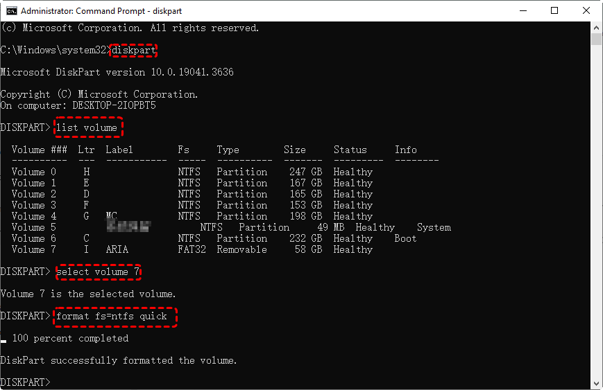 select volume X(Xを正しいパーティション番号に置き換えてください。)