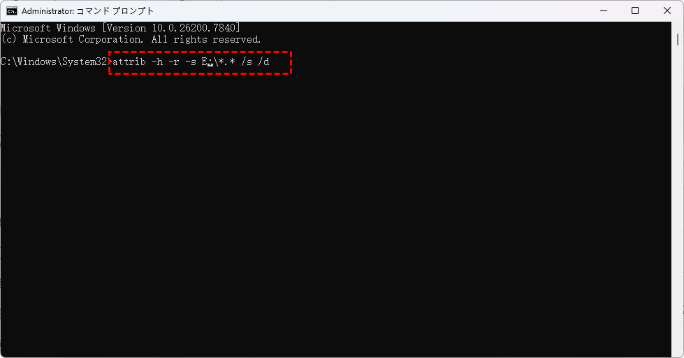 3. Enterキーを押して待機します。これにより、隠し属性、読み取り専用属性、システム属性が再帰的に削除されます。