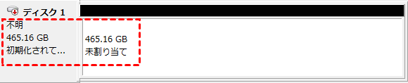 Windows10で外付けハードディスクを接続しましたが、写真のとおり「不明」「初期化されていません」「未割り当て」と表示するので初期化することができません。解決方法を教えてください!