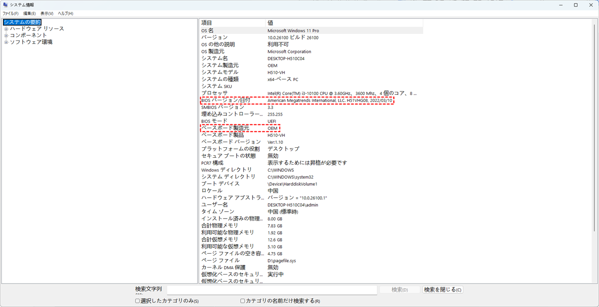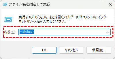 ステップ 1:「Win+R」キーを押し、「msinfo32」と入力して実行します。表示された「システムモデル」と「BIOSのバージョン/日付」を確認します。