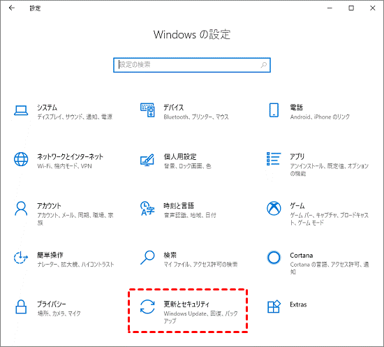 ステップ 1. 「Windowsの設定」にアクセスし、「更新とセキュリティ」を見つけてクリックします。