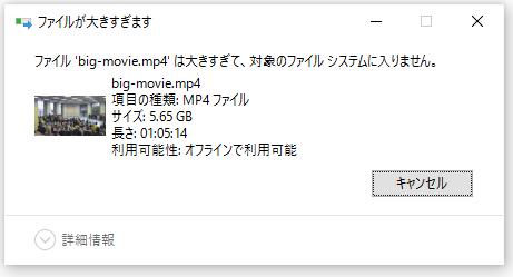 「ファイルは大きすぎて、対象のファイルシステムに入りません」の原因と解決策