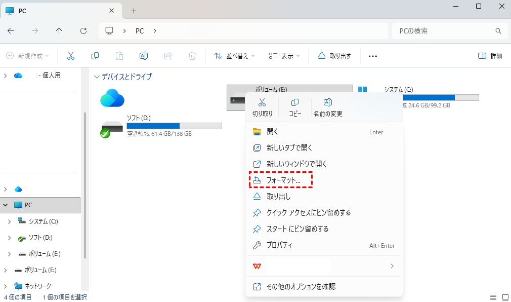 ステップ 1:エクスプローラーを開き、USBドライブを右クリックして「フォーマット」を選択します。