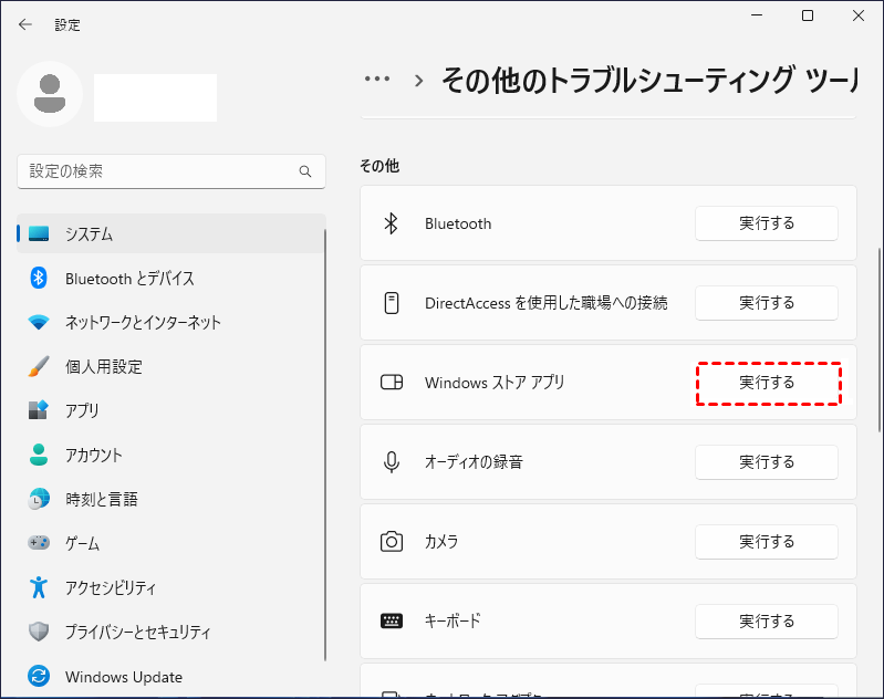 ステップ 4:リストから「Windowsストアアプリ」を見つけ、その横にある「実行する」ボタンをクリックします。