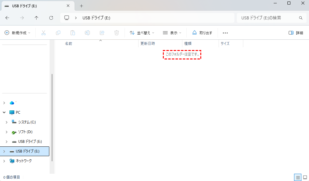 USBメモリやSDカードなどの外部HDDでこのエラーが発生する場合、接続の問題が原因である可能性があります。データケーブルの緩みや故障したUSBポートが原因で、ドライブが空のように表示されることがあります。