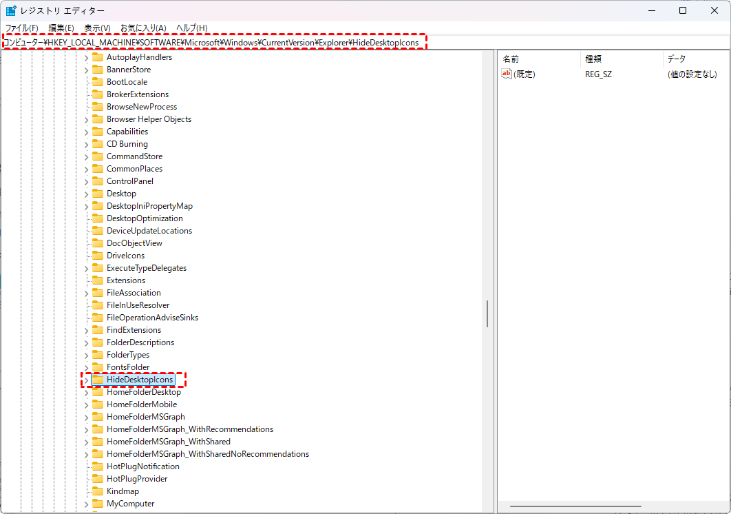 HKEY_LOCAL_MACHINE\SOFTWARE\Microsoft\Windows\CurrentVersion\Explorer\HideDesktopIcons