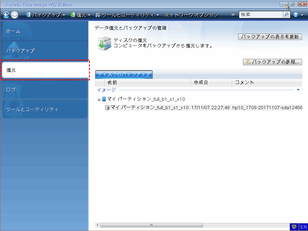 方法1:Acronis True Image for Western Digitalを使用「バックアップがある場合」