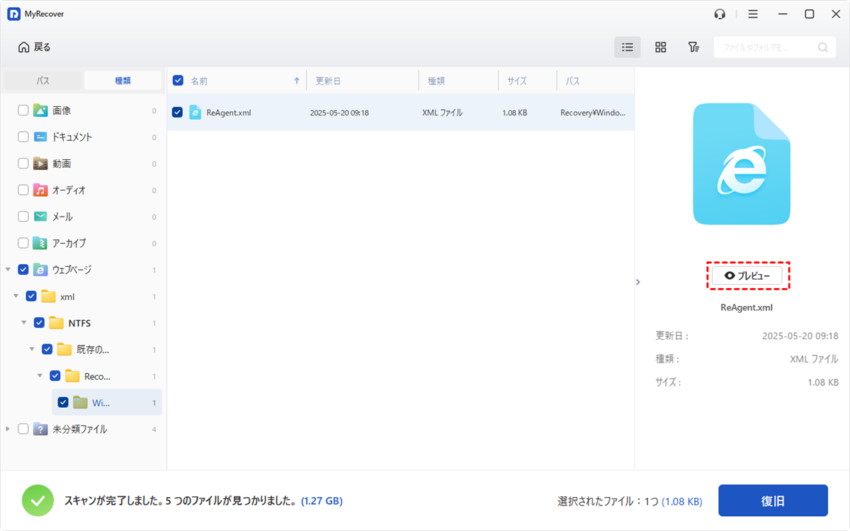 より簡単でスムーズな復元をお求めの場合、MyRecoverの使用がより推奨されます。このソフトウェアは、500以上ものデータ損失シナリオ(あらゆる種類の削除や論理障害を含む)に対応し、起動不能なパソコンからのデータ復元もできます。さらに、1000以上のファイル形式と500種類以上のデバイスから失われたデータの復元に成功しており、最高レベルの互換性と機能を備えています。