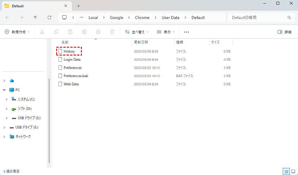 ステップ 2:History(メインデータベース)とHistory-journal(一時ログ)などのファイルを探します。