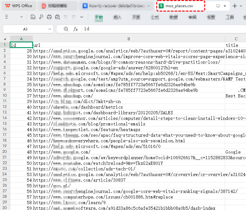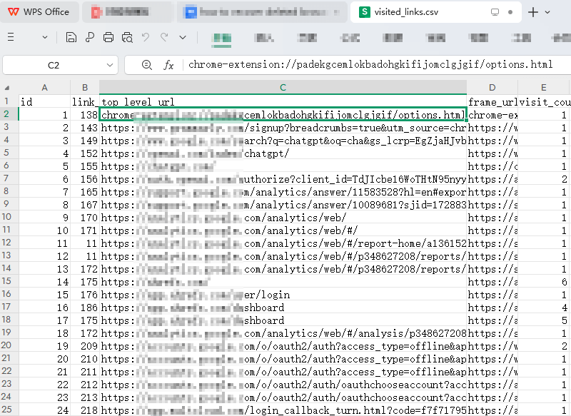その後、.csvファイルを開いて、削除した閲覧履歴を確認できます。