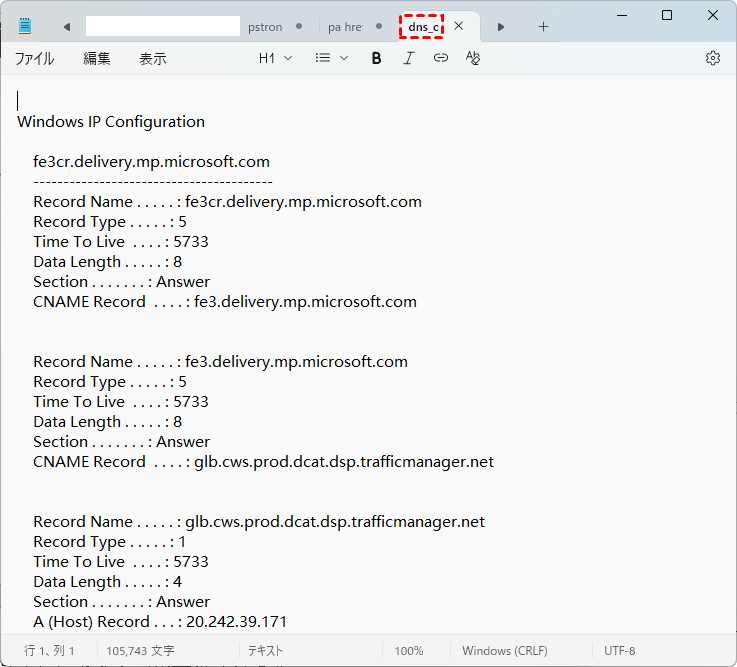 ステップ 4:メモ帳でdns_cache.txtを開きます。