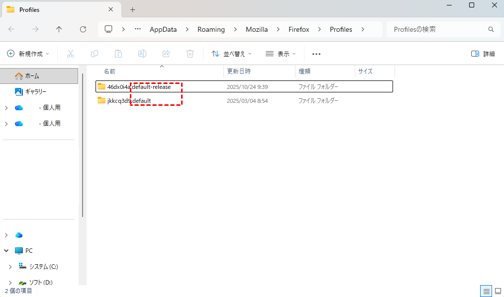 ステップ 2:名前に「.default」または「.default-release」が含まれるフォルダを開きます。