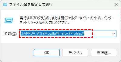 ステップ 1:Win+Rキーを押し、「%APPDATA%\Mozilla\Firefox\Profiles\」と入力してEnterを押します。