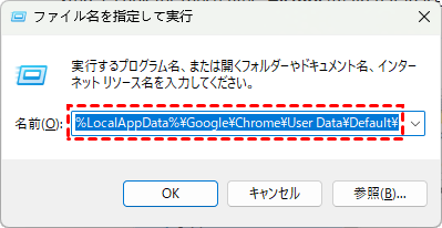 ステップ 1:Chromeのプロファイルフォルダに移動します:「Win+R」キーを押し、「%LocalAppData%\Google\Chrome\User Data\Default\」と入力してEnterを押します。