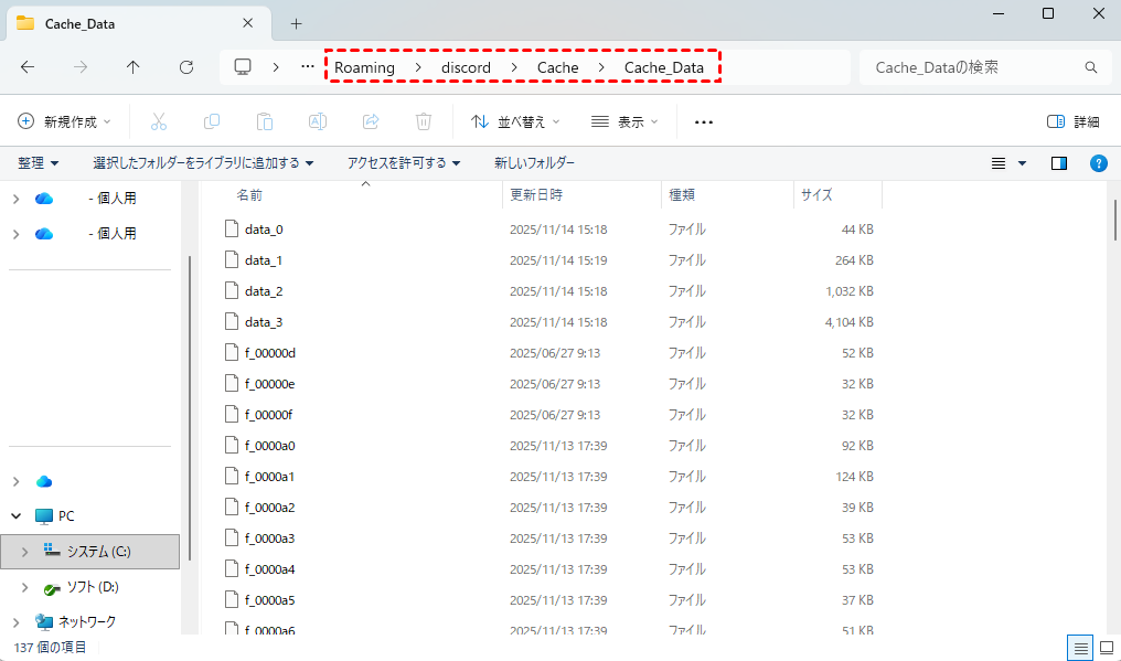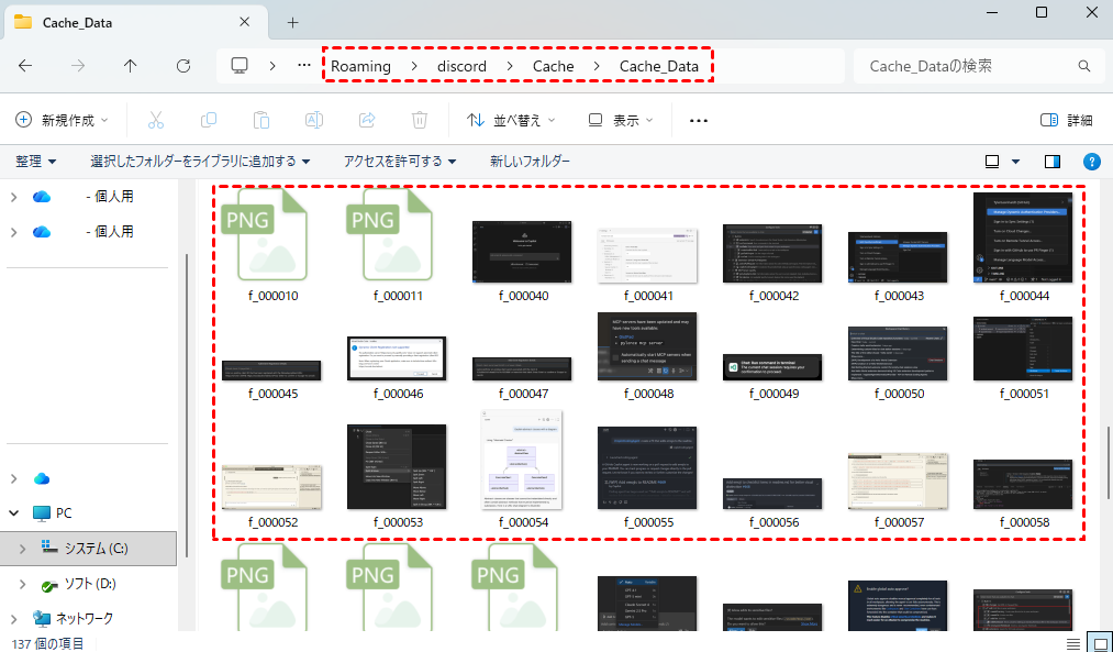 この処理が完了したら、Discordのキャッシュフォルダを確認し、目的のファイルがあるかどうかを確認できます。