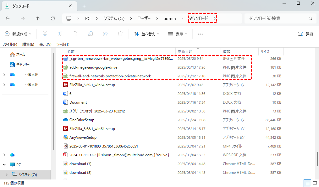 方法1:ダウンロード/ピクチャーフォルダを確認