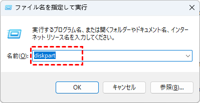 1. 「Win+R」キーを押し、「diskpart」と入力して「Enter」を押します。