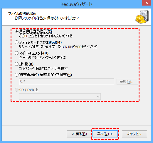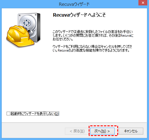 ステップ 1:公式サイトからRecuvaをダウンロードし、インストール後、起動します。最初の画面で「次へ」をクリックします。