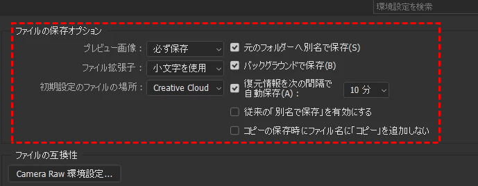 Photoshopアプリケーションを起動し、「編集>環境設定>ファイル処理」に移動します。次に「自動的に...ごとに復元情報を保存」にチェックを入れ、必要に応じて自動保存の間隔を5分、10分、15分、30分、または1時間に設定します。