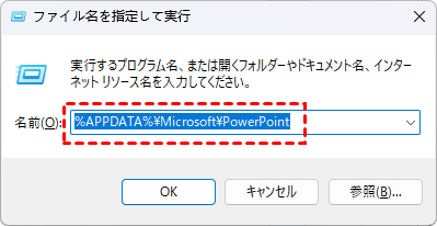 ステップ 1. キーボードで「Win+R」を入力し、「%APPDATA%\Microsoft\PowerPoint」(または%temp%)を押し、キーボードの「Enter」をクリックします。