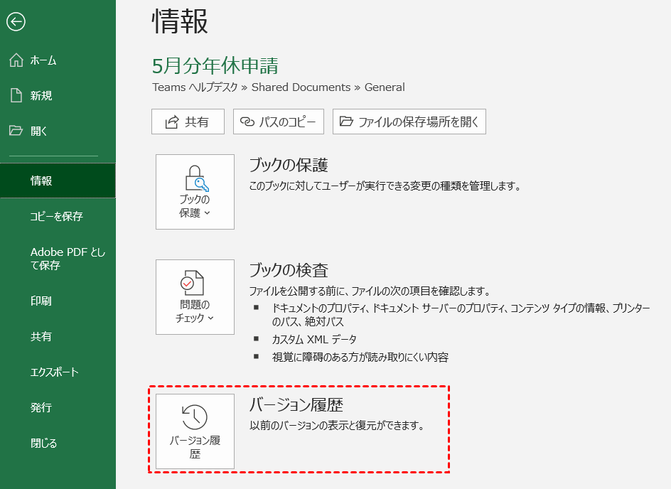 方法2:Excel組み込みの「バージョン履歴」を使用