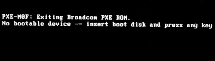 「no bootable device insert boot disk and press any key」
