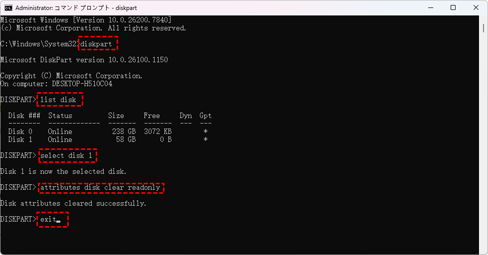 または、Diskpartを介してSDカードの読み取り専用属性をクリーンアップできます。