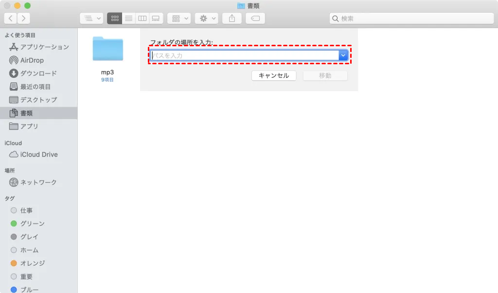 Finderで「Shift+Cmd+G」を押し、以下を入力します: