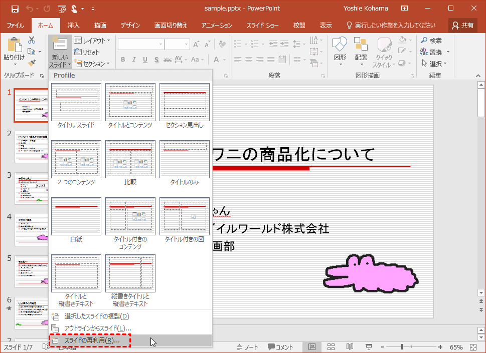 ステップ 2:「ホーム>新しいスライド>スライドの再利用」に移動します。