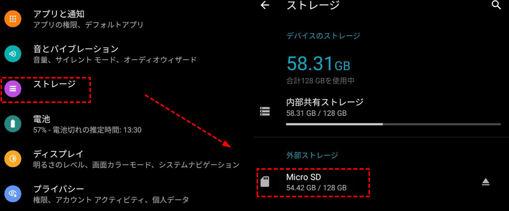まず、内部ストレージ化されたSDカードを外部ストレージに変換し、通常のSDカードとして使用できる状態にする必要があります: