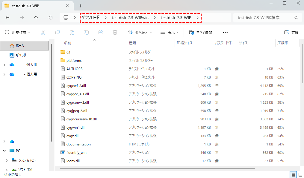 ファイル復元を開始すると、TestDiskは現在の作業ディレクトリ(通常はtestdisk_win.exeプログラムがあるフォルダ:C:\Users[ユーザー名]\Downloads\testdisk-7.2-WIP\)を開きます。そのため、手動で別の場所に移動しない限り、TestDiskは復元したファイルを同じフォルダに保存します。
