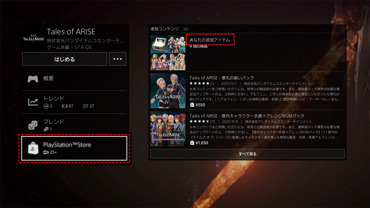 ステップ 3:「PlayStation Store」を選択し「あなたの追加アイテム」に移動します。その後、ゲーム内アカウントにログインしてゲームの進行状況を復元します。