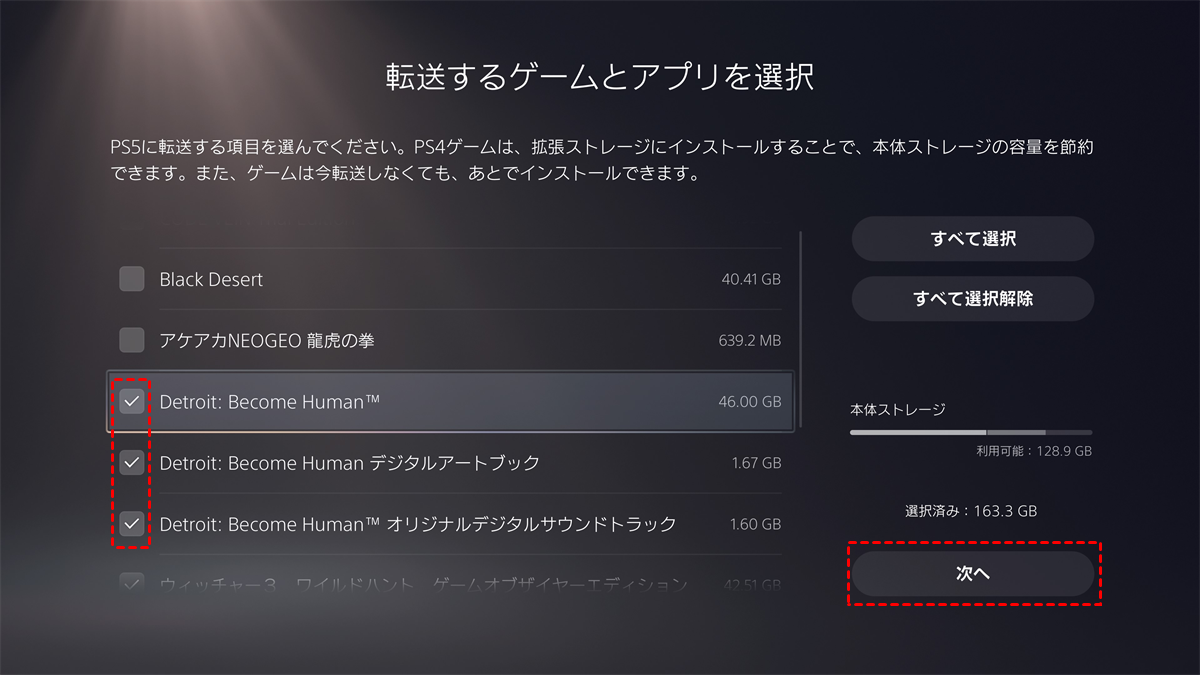 ステップ 5:新しいゲーム機に転送したい保存データ、ゲーム、アプリを選択し、「次へ」をクリックします。
