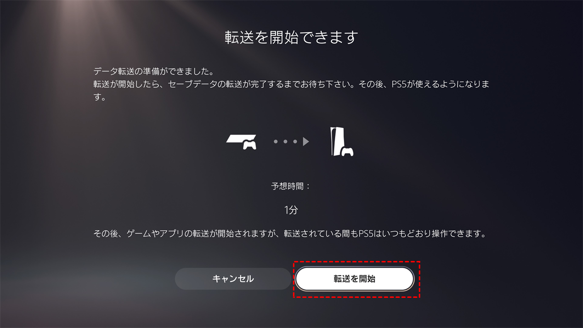 プロセスは時間が必要ですからゲーム機を閉じないでください。データ転送が完了すると、新しいコンソールが自動的に再起動します。
