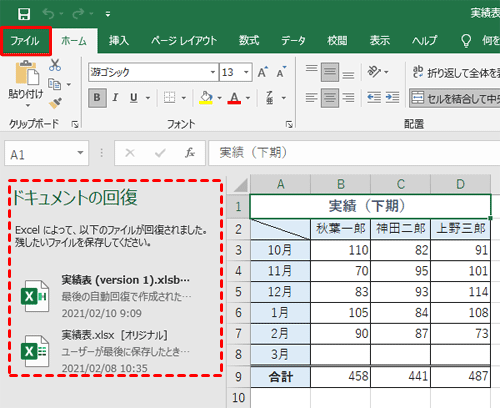 Q:自動回復が有効になる前のExcelファイルを復元できますか?