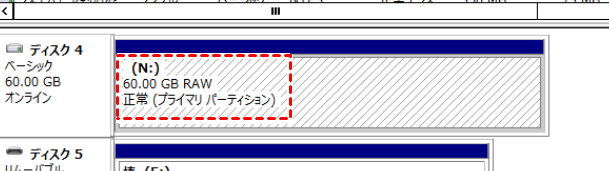 - 「ディスクの管理」でファイルシステムが「RAW」と表示される