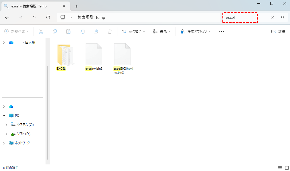- Excel一時ファイルを復元する場合は、「~Excel」のような名前を含むファイルを探します。