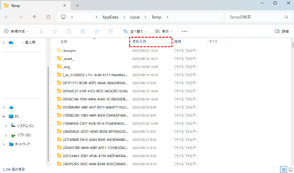 Tempフォルダ内で、「更新日時」の列をクリックしてファイルを並び替えます。これにより、最近作成または編集されたファイルを素早く見つけることができ、クラッシュや文書の誤った終了が発生したばかりの場合に特に便利です。
