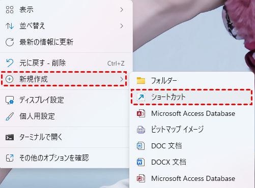 ステップ 1. デスクトップの空白部分を右クリックし、「新規作成」と「ショートカット」を選択します。