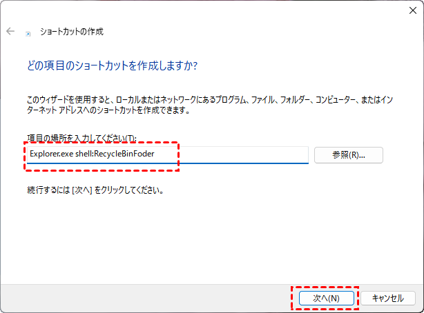 ステップ 3. ショートカットの名前を「ごみ箱」に変更し、「完了」をクリックしてプロセスを開始します。