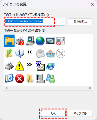 ステップ 5. ごみ箱アイコンを選択し、「OK」をクリックして設定を保存します。ごみ箱アイコンが表示されない場合は、次のパスを入力して「Enter」キーを押します: