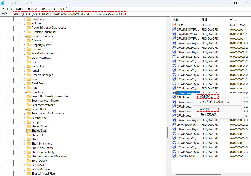 DLLエラーは、欠落または間違ったDLLファイルの場所を指し示す、不正確または壊れたレジストリエントリが原因で発生することがあります。これらのレジストリ問題を手動で修正することで、WindowsがDLLファイルを正しく見つけ、関連するエラーを解決できるようになります。安全に実行するには、まずレジストリをバックアップし、無効なDLLエントリを見つけて修正します: