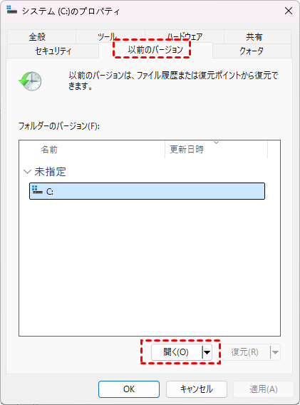 以前のバージョンを復元