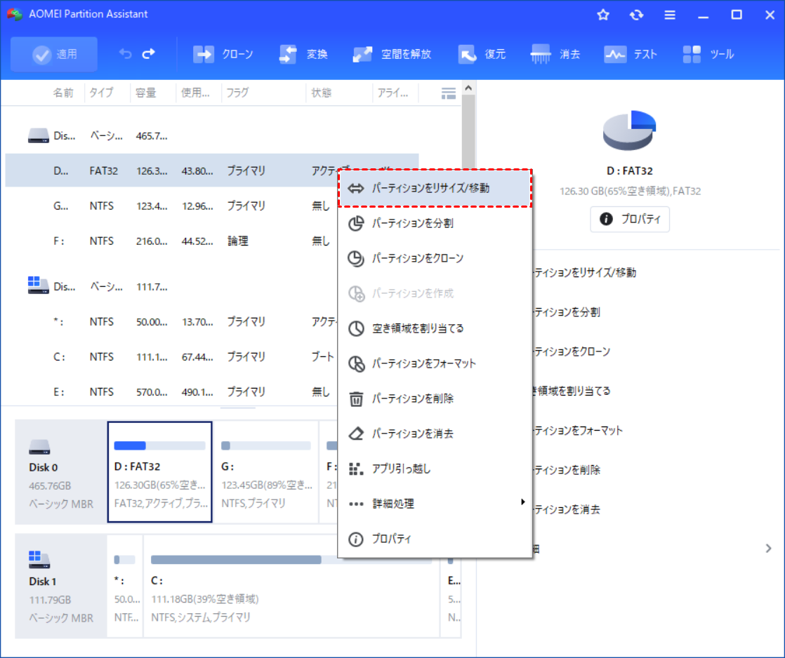 組み込みツールが機能しない場合は、AOMEI Partition Assistantなどのサードパーティ製ディスク管理ソフトウェアを使用できます。このツールは、特に組み込みツールで問題が解決しない場合に、ドライブのサイズ変更、パーティション分割、管理のためのより柔軟で高度な機能を提供します。