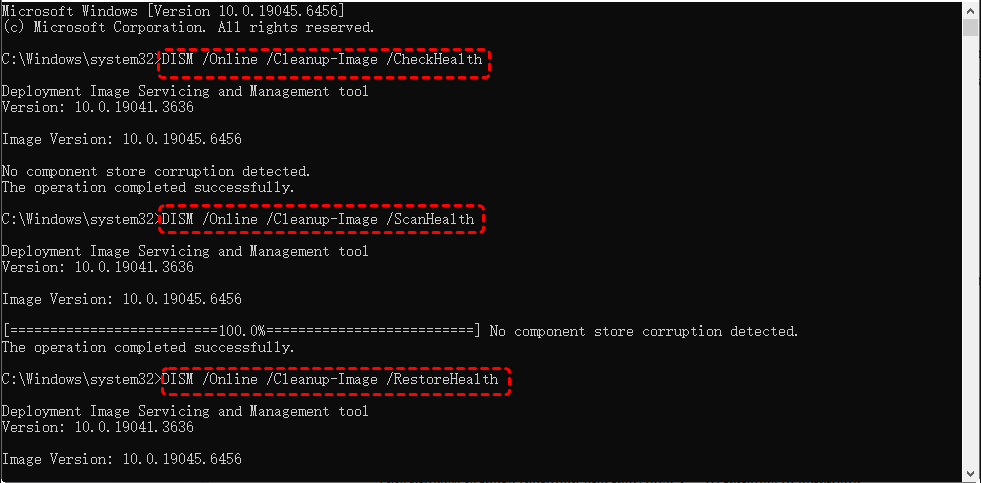 DISM /Online /Cleanup-Image /ScanHealth