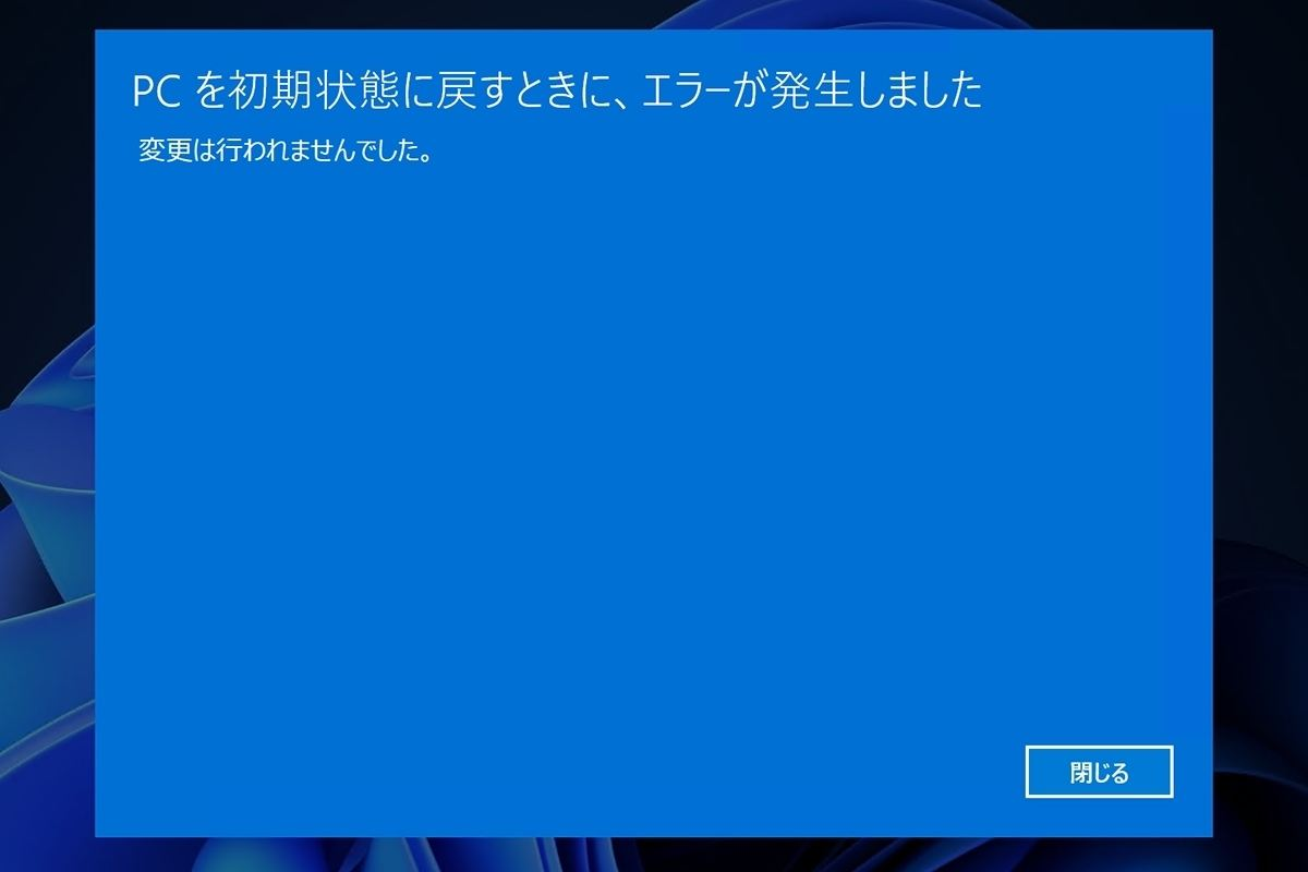 【解決済み】PCを初期状態に戻すときにエラーが発生しました「Windows 10で」