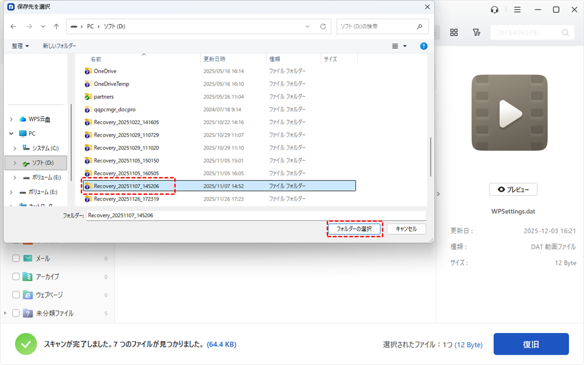 4. 復元されたファイルを保存する別の安全な場所を選択し、「フォルダーの選択」を押してSDカードのフォーマット解除を完了します。